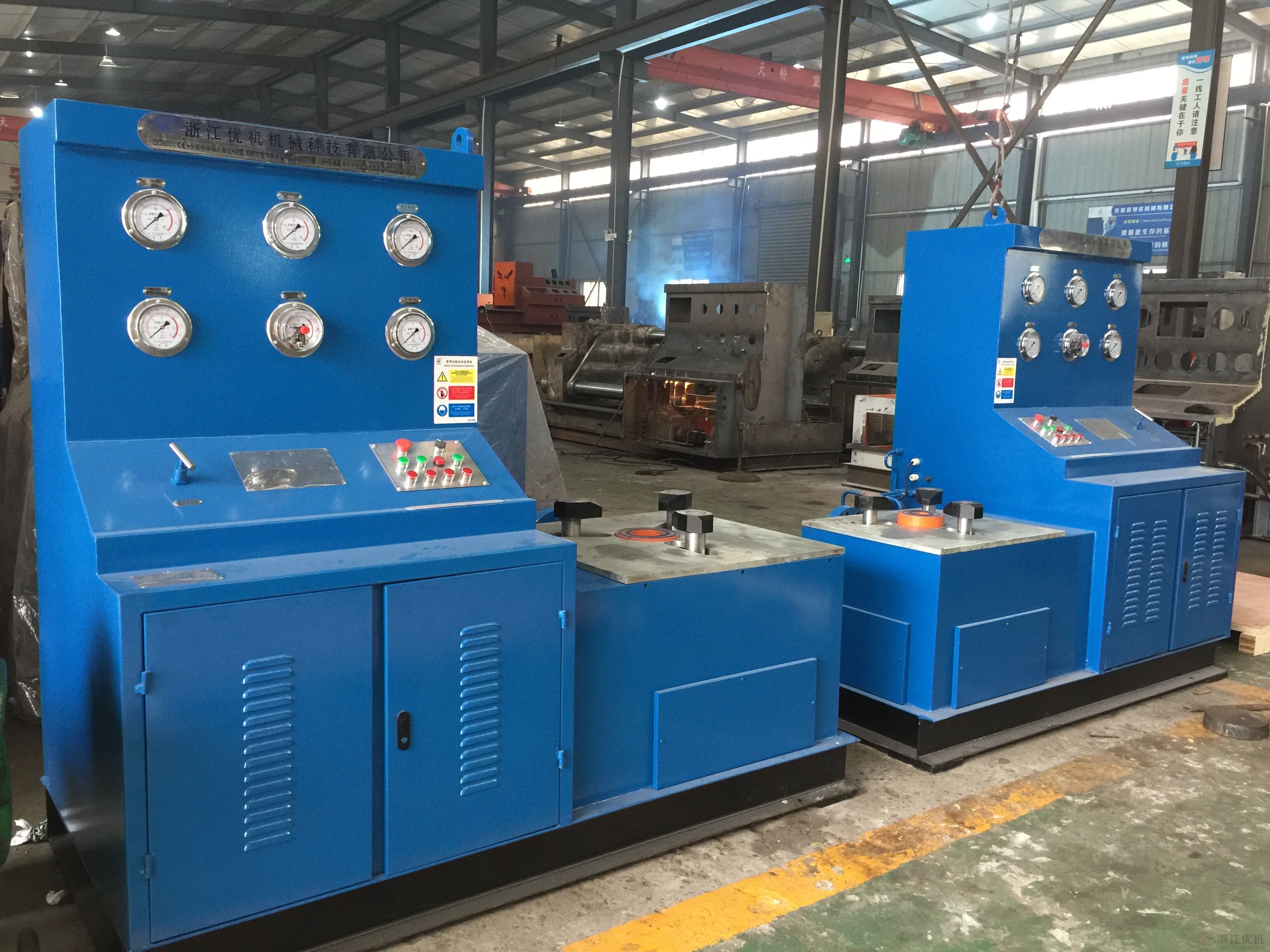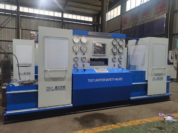 JLA型安全閥性能校驗臺是我公司科技人員按照國家GB/T1 3927—92和ZBJl6006—90有關標準要求參照國外同類產(chǎn)品之優(yōu)點,結合我們多年生產(chǎn)閥門檢測設備技術經(jīng)驗基礎上,自行成功研制國內(nèi)首臺JLA型安全閥性能測試。JLA型閥門液壓試壓機是我公司在積累多年生產(chǎn)閥門檢測設備技術的基礎上按照國家GB/T1 3927 — 92《通用閥門壓力試驗》和ZBJl6006-90《閥門的試驗與檢測》的標準規(guī)范要求,是公司自主研發(fā)的安全閥試驗臺并擁有國家技術專利知識產(chǎn)權,專利號ZL2016 1 0240324.1。該校驗臺省去了原傳統(tǒng)的大竄容積的高壓畜氣罐,只需配備普通的0.6MPa空壓氣泵氣源。經(jīng)過本機會自動進行調(diào)節(jié)0.6-32.0MPa氣體介質試驗壓力。適用于公稱通徑DNl 5~300mm安全閥的整定、啟閉、回座壓