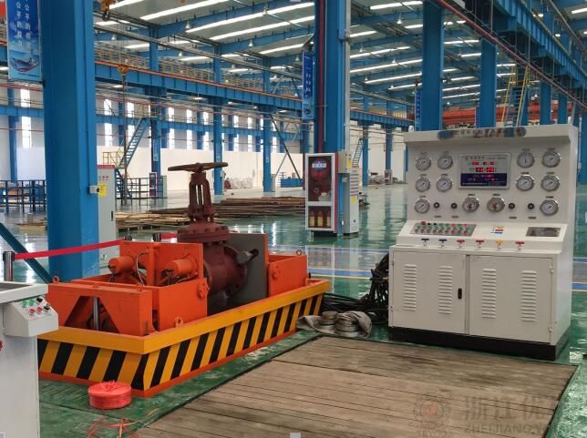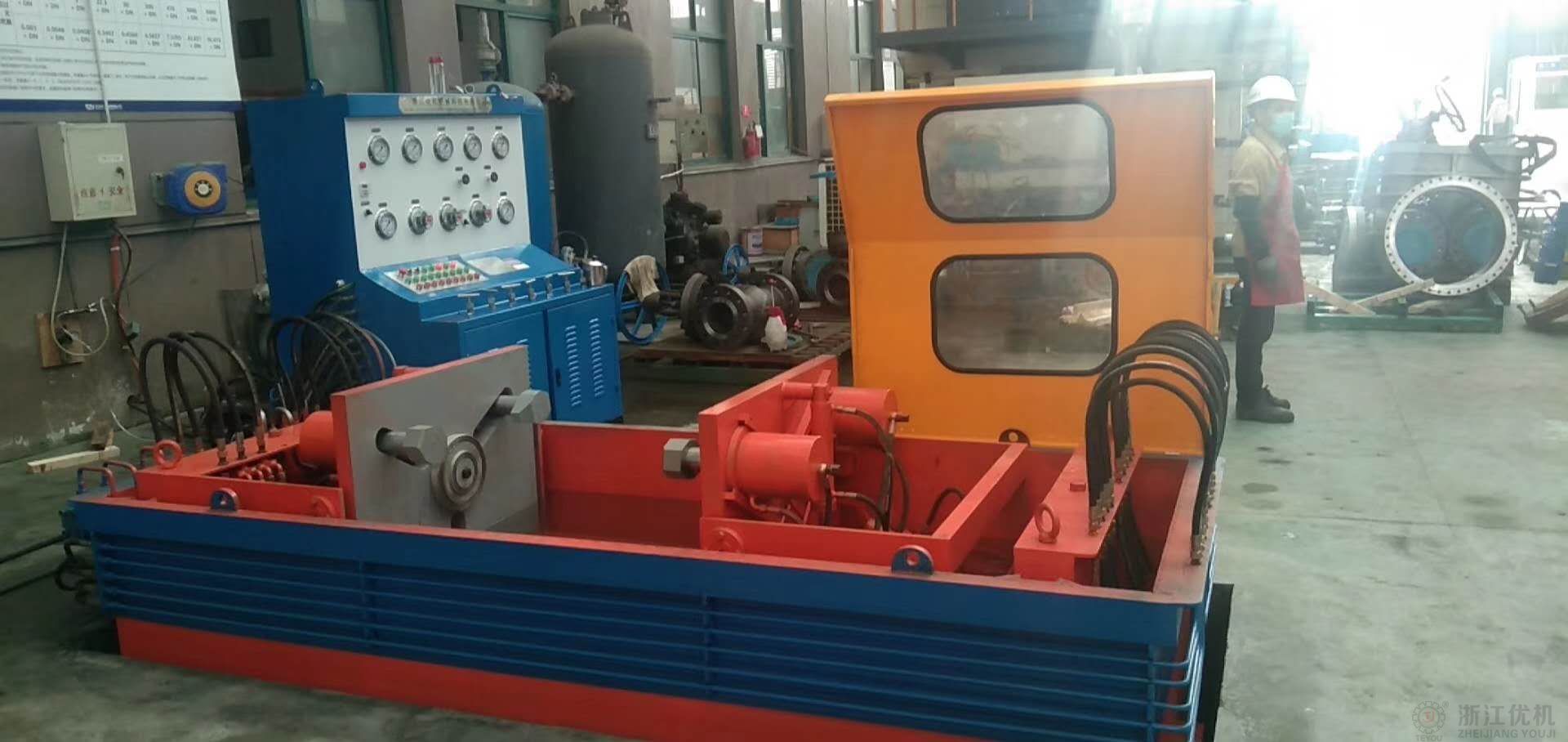 五、測試閥門時(shí),首先根據(jù)被試閥門試驗(yàn)壓力,要求參照《壓緊油缸所需壓力對(duì)照表》中液壓壓緊系統(tǒng)壓力值,進(jìn)行增壓壓力調(diào)節(jié),嚴(yán)禁增壓壓力值超高、防止被試閥門變形損壞。