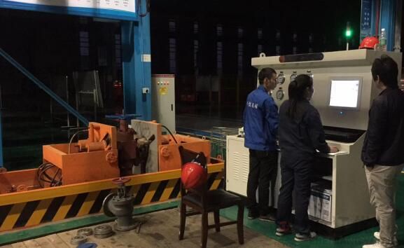 調(diào)整水源電接點(diǎn)壓力表,水泵開關(guān)<低壓水泵>開,先把被試閥門內(nèi)部水注滿,低水壓力表為O 5MPa內(nèi)水已滿,關(guān)掉水泵開關(guān)<低壓水泵>關(guān)。再按<高壓水泵開>調(diào)節(jié)供水泵壓力調(diào)節(jié)閥,<供水泵,液壓系統(tǒng)減壓閥J一25B>把液體試壓壓力達(dá)到和被試閥門密封壓力及電接點(diǎn)壓力表值相同時(shí),高壓水泵就自動(dòng)停機(jī),關(guān)閉 <;總水開關(guān)>。保壓數(shù)分鐘后,水壓表無下降,測試密封完畢,開<泄壓開關(guān) >,將被試閥門內(nèi)的壓力泄壓,<水壓表>為零,可以放松被試閥門或同時(shí)繼續(xù)進(jìn)行強(qiáng)度測試。